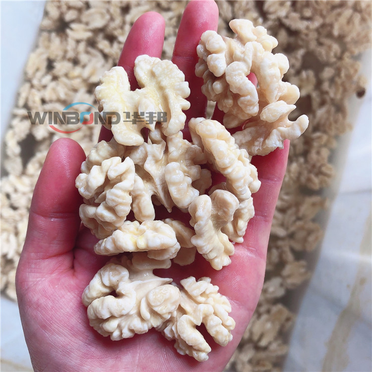 核桃仁去皮機的主要作用是利用高壓水流沖洗掉核桃仁表面的皮衣,因為核桃仁表皮發澀,口感不好,在核桃露、核桃醬、保鮮核桃、琥珀核桃、核桃飲料等產品的加工過程中是一個困擾,山東華邦生產核桃仁去皮清洗機,專門針對核桃仁表皮的沖洗,連續式工作,操作簡單,去皮率高,自動化程度高,節省人工。