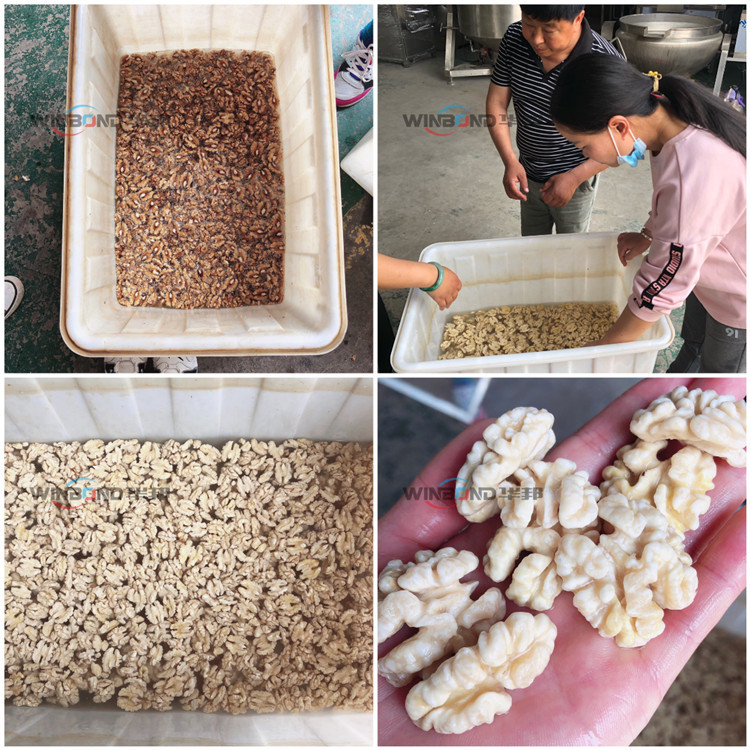 我們?nèi)粘I钪幸姷降暮颂胰识际菐в幸粚颖∫碌模云饋砺樽欤l(fā)澀,完全改變了核桃仁的美味,如果制成各種小零食,還是要把苦澀的外衣去掉,以前工藝落后,只有用堿浸泡,人工去皮,不但損壞了核桃仁的養(yǎng)分,而且效率太慢。