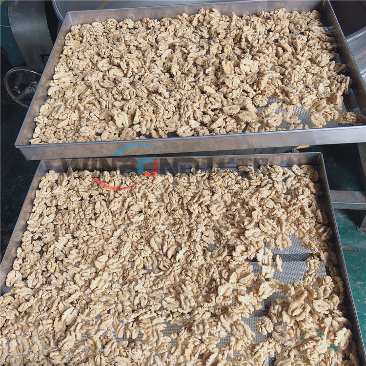 諸城市華邦機械有限公司 新研制的核桃仁去皮清洗機,采用純物理去皮方法,專門針對核桃仁表皮的沖洗,代替了傳統的化學泡制去皮,使產品更安全放心,連續式工作,操作簡單,去皮率高,自動化程度高,節省人工,可配套烘干箱、炒鍋、氣泡清洗機使用。