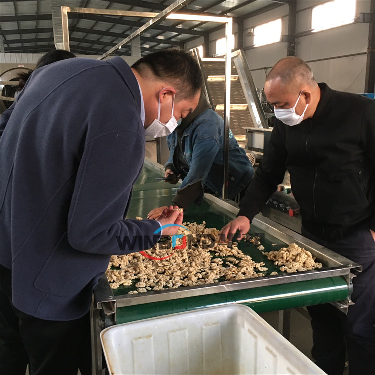 2.滾筒脫皮:采用高壓循環(huán)水泵可以快速、洗掉核桃仁表面的泥垢、表皮。清洗后進(jìn)入清水噴淋區(qū),然后進(jìn)入振動(dòng)篩,由振動(dòng)篩將大部分水珠震動(dòng)掉后進(jìn)入風(fēng)干線或烘干機(jī),風(fēng)干或烘干完畢后進(jìn)入下一道工序。生產(chǎn)線可實(shí)現(xiàn)變頻調(diào)速、自動(dòng)控溫,節(jié)水。