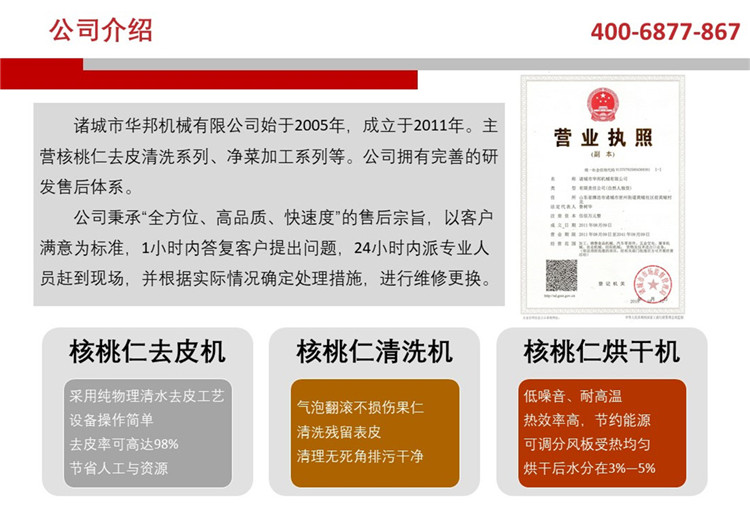 諸城華邦機(jī)械有限公司研發(fā)的核桃仁去衣機(jī)已有多年經(jīng)驗(yàn),技術(shù)成熟,且設(shè)備可以去掉不同品種核桃的技術(shù),去皮率到達(dá)98%以上,完整率99%以上,設(shè)備噴淋去皮的角度都是可以隨意調(diào)節(jié)的。