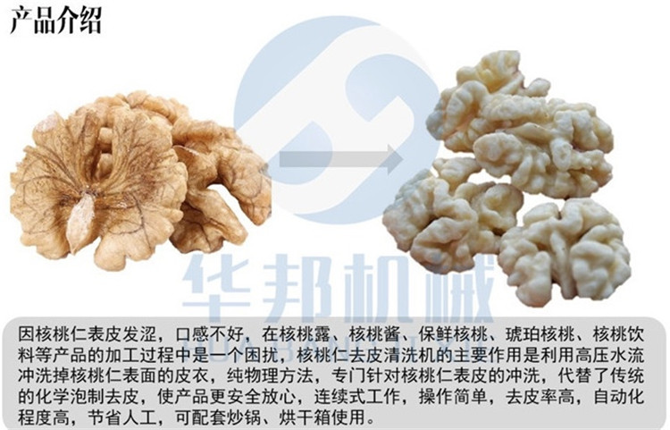 核桃仁營養(yǎng)豐富,不僅含有蛋白質、礦物質還含有多種維生素。但因為它有一層發(fā)苦發(fā)澀的外衣,很多人比較厭煩,在生產(chǎn)核桃露、核桃醬、保鮮核桃、琥珀核桃、核桃飲料等產(chǎn)品的加工過程中是一個困擾。我公司生產(chǎn)出核桃仁脫皮機,專門針對核桃仁表皮的沖洗,連續(xù)式工作,自動化程度高,操作簡單。