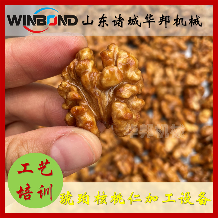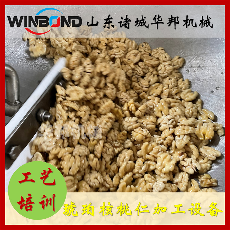 華邦全新琥珀核桃仁加工設(shè)備,在原有基礎(chǔ)上更上了一層樓,從各個(gè)細(xì)節(jié)方面做得更加完善。做琥珀核桃仁之前要把核桃仁上面那成苦澀的薄衣去掉。