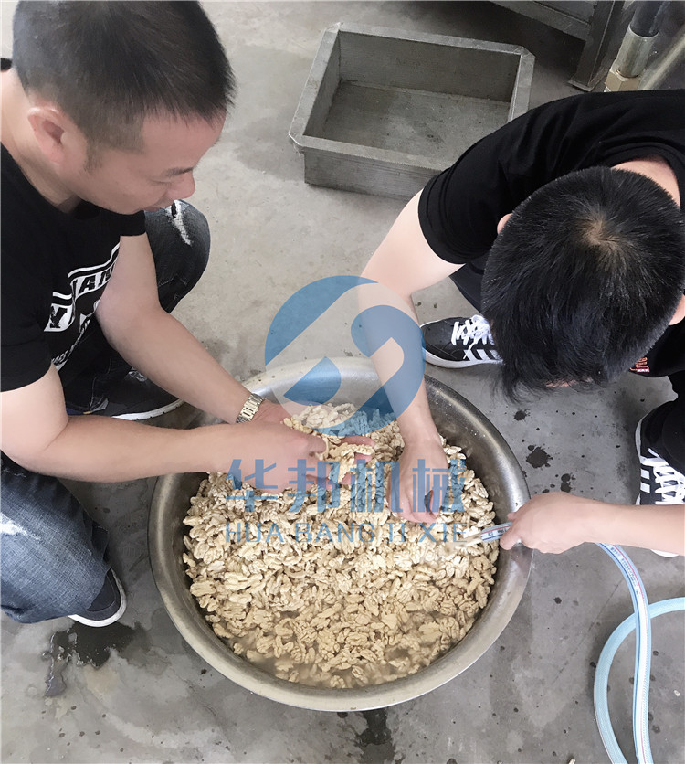 華邦機械由最初的化學(xué)去皮升級到物理去皮,工作時間短,產(chǎn)量大,去皮率達(dá)98%,根據(jù)不同核桃仁的品種調(diào)節(jié)去皮工藝,可控性好,保障核桃仁的完整度,實現(xiàn)連續(xù)式生產(chǎn)。