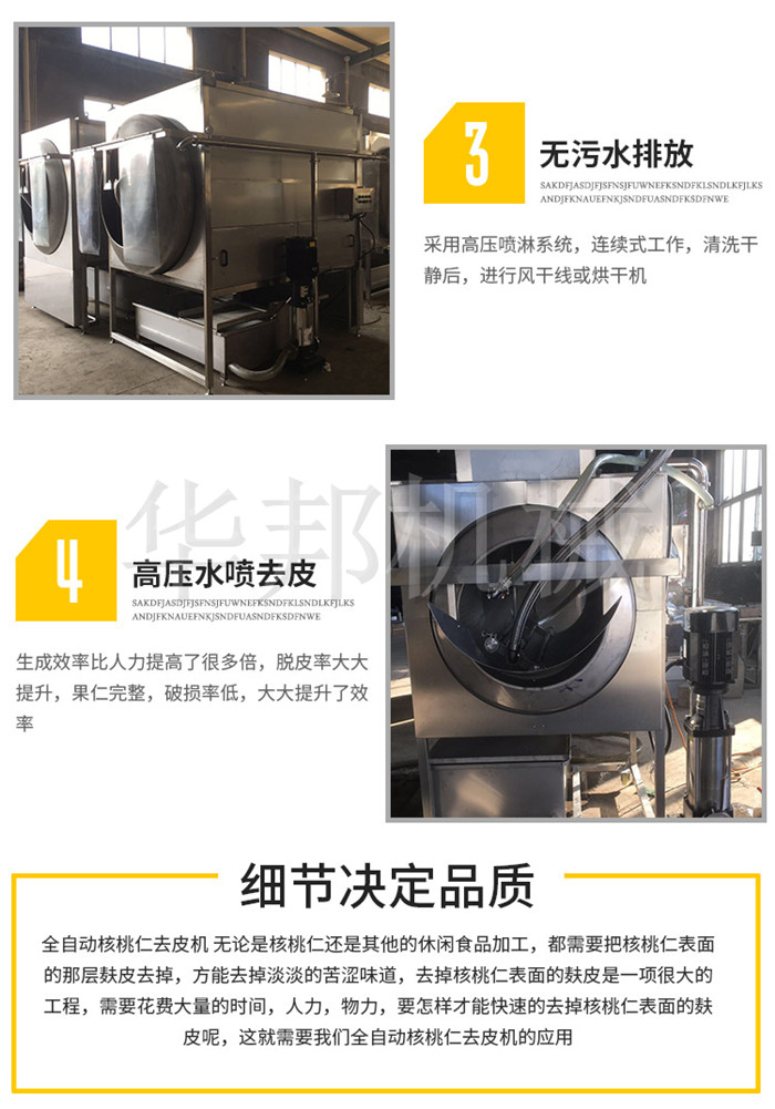 LN核桃仁去皮機(jī)主要作用:利用高壓水流沖洗掉核桃仁表面的皮衣,因?yàn)楹颂胰时砥ぐl(fā)澀,口感不好,在核桃露、核桃醬、保鮮核桃、琥珀核桃、核桃飲料等產(chǎn)品的加工過程中是一個(gè)困擾,山東華邦生產(chǎn)核桃仁去皮清洗機(jī),專門針對(duì)核桃仁表皮的沖洗,連續(xù)式工作,操作簡(jiǎn)單,去皮率高,自動(dòng)化程度高,節(jié)省人工。