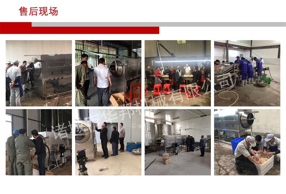 1.去皮機采用滾筒式設計,大大減少了占地面積,小機器,產量大。